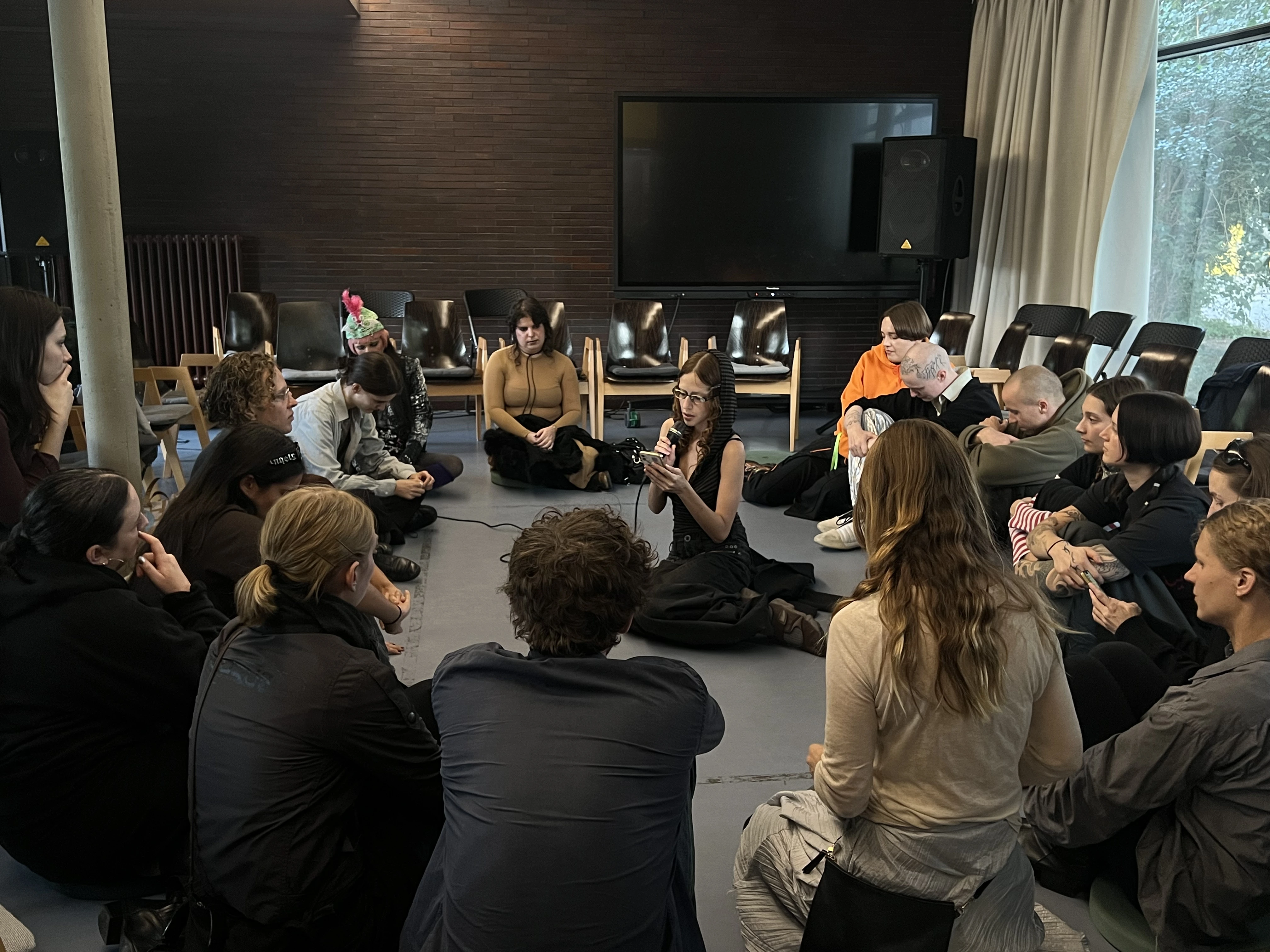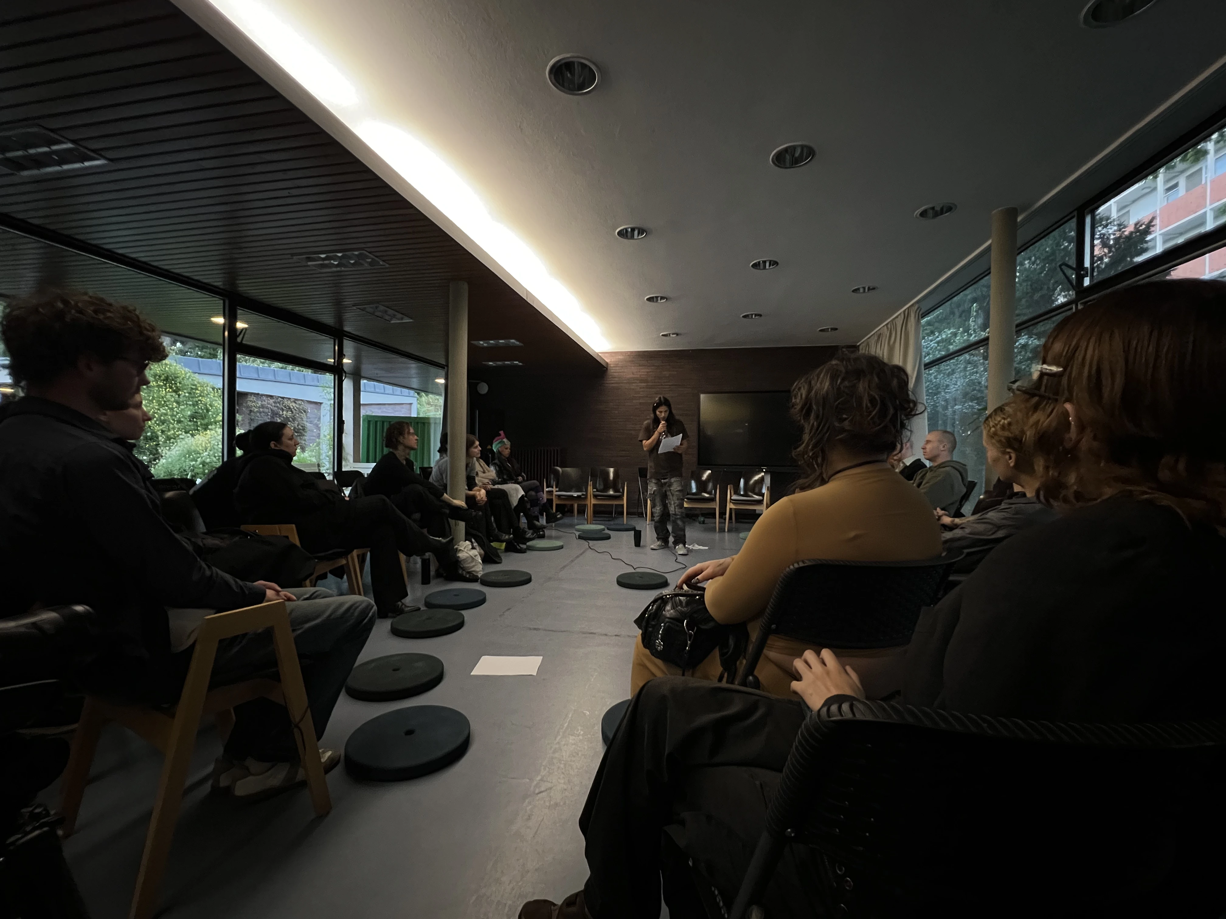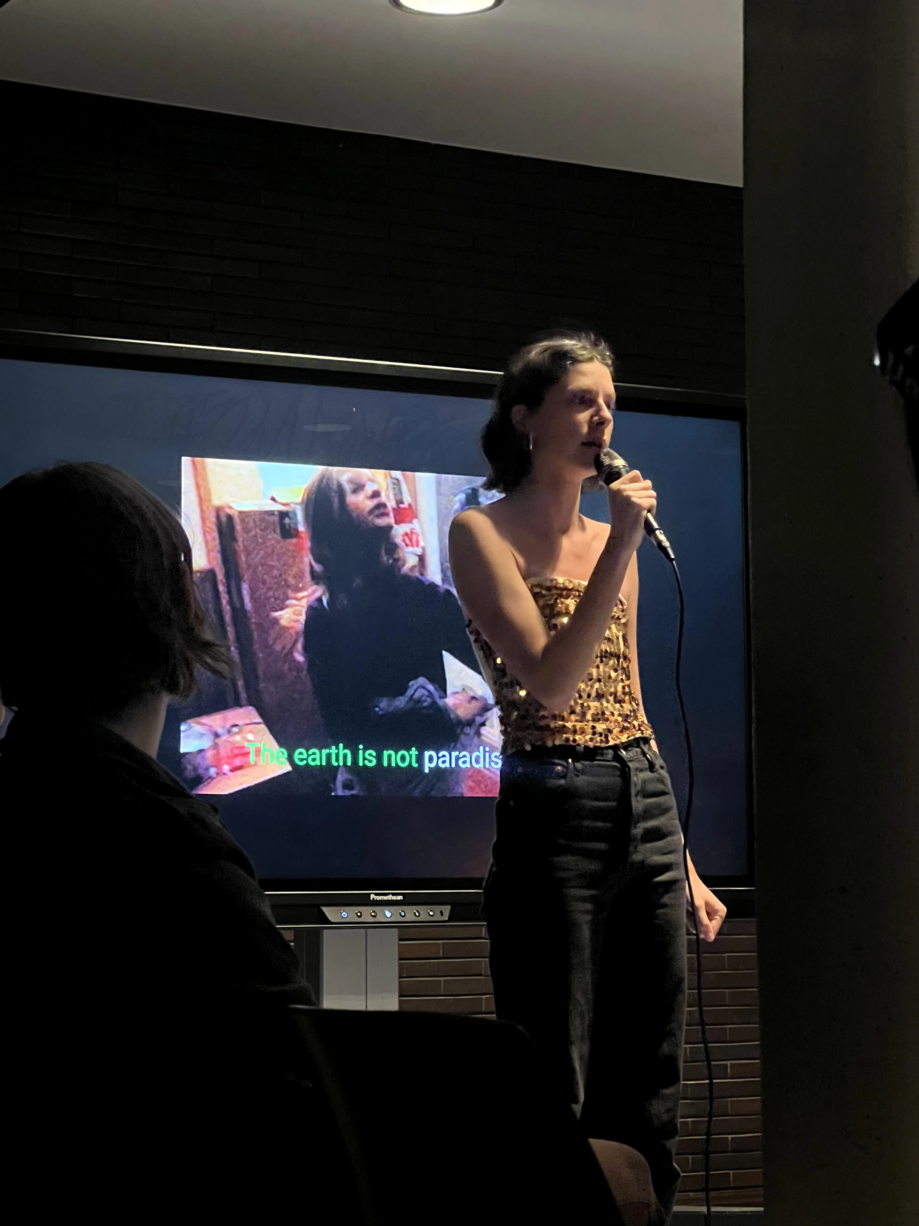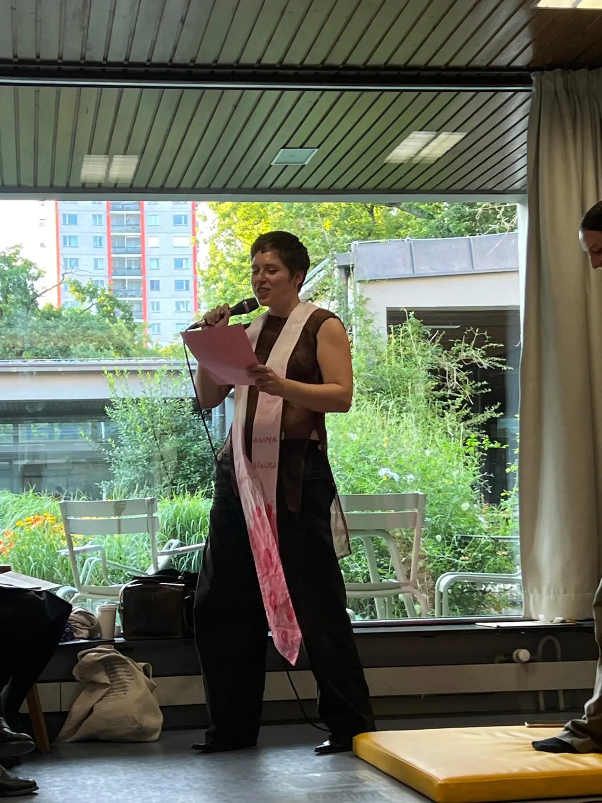 A session focused on the crossing of sound and voice โ where noise meets poetry, theatrics shift meaning, karaoke leaks theory, and lipsync arouses. This afternoon of readings and performances encompassed ice-breakers, short stories, and agitated leaves to *cunty*, sonic, "scalar and undetermined" fantasies of sound.